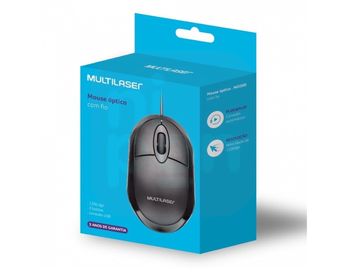 Mouse Classic Óptico USB 1200dpi Preto Multilaser - MO300